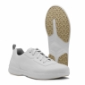 - Подошва выполнена из комбинации ЭВА и термополиуретан. Ходовой слой из термополиуретана добавляет антискользящие свойства подошве и повышенную стойкость к истиранию, что делает модель безопасной для использования в медицинских учреждениях, где возможны влажные и скользкие покрытия. Двухслойная подошва обеспечивает надежное сцепление с поверхностями, что минимизирует риск падений на скользких полах. Материал ЭВА обеспечивает легкость и отличную амортизацию, снижая усталость и нагрузку на стопы при продолжительном ношении.