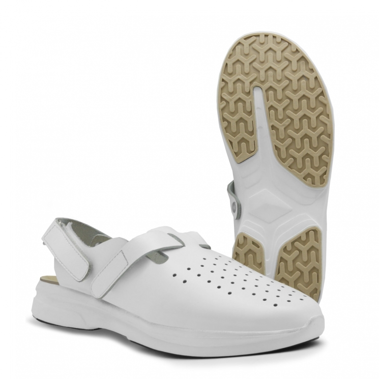 - Закрытая носочная часть с аккуратной перфорацией обеспечивает комфортную вентиляцию, предотвращая перегрев стопы в течение длительной смены. Регулируемые ремешки с пряжками позволяют точно подстроить посадку как по подъёму, так и по пятке, обеспечивая стабильность стопы при движении и лёгкость обувания. Открытая пяточная часть даёт дополнительную свободу и циркуляцию воздуха, сохраняя ощущение прохлады даже при активной работе. Модель максимально облегченная т.к бесподкладочная.