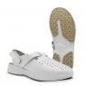Подошва выполнена из комбинации ЭВА и термополиуретан. Ходовой слой из термополиуретана добавляет антискользящие свойства подошве и повышенную стойкость к истиранию, что делает модель безопасной для использования в медицинских учреждениях, где возможны влажные и скользкие покрытия. Двухслойная подошва обеспечивает надежное сцепление с поверхностями, что минимизирует риск падений на скользких полах. Материал ЭВА обеспечивает легкость и отличную амортизацию, снижая усталость и нагрузку на стопы при продолжительном ношении.