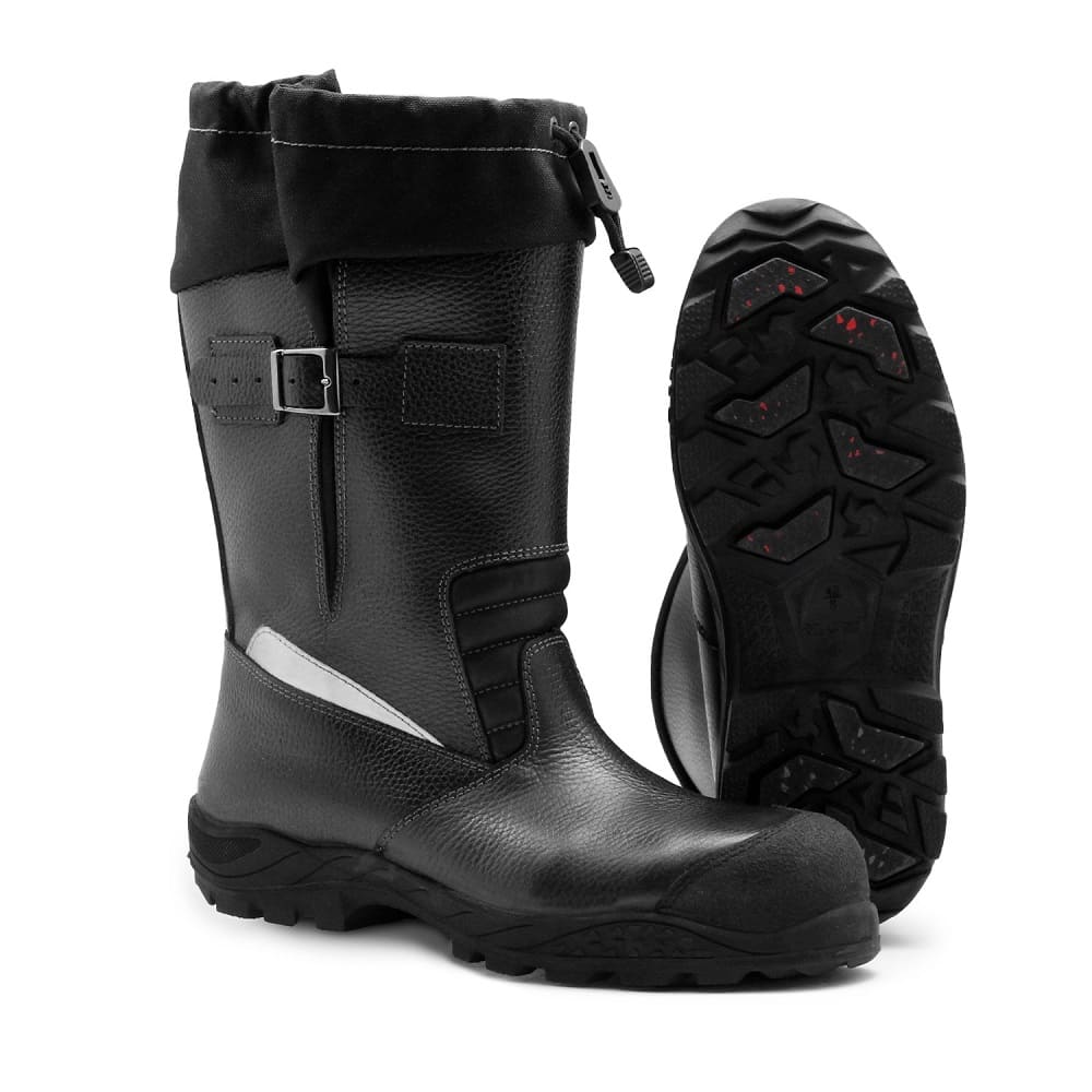 - Подошва: из морозоустойчивой нитрильной резины, которая характеризуется отличной устойчивостью к воздействию низких температур, стойкостью к маслам, нефти и нефтепродуктам, кислотам и щелочам слабой концентрации. Специальные вставки на ходовой поверхности подошвы из резины повышенной плотности обеспечивают высокую износоустойчивость и сцепление подошвы на скользкой поверхности. Подошва рабочих ботинок с выраженными грунтозацепами и широкими грязеотводящими каналами, обладает достаточной площадью соприкосновения с поверхностью для лучшей устойчивости. Литьевой метод крепления с последующей горячей вулканизацией обеспечивает надежное и герметичное соединение.